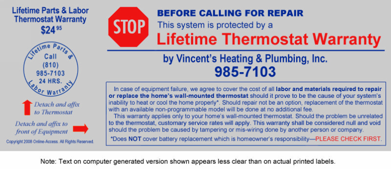 Many Online-Access customers have reordered these stickers again and again. They provide assurance that your company name will be remembered and that you'll be called first should a homeowner have a problem with their system maintaining temperature.